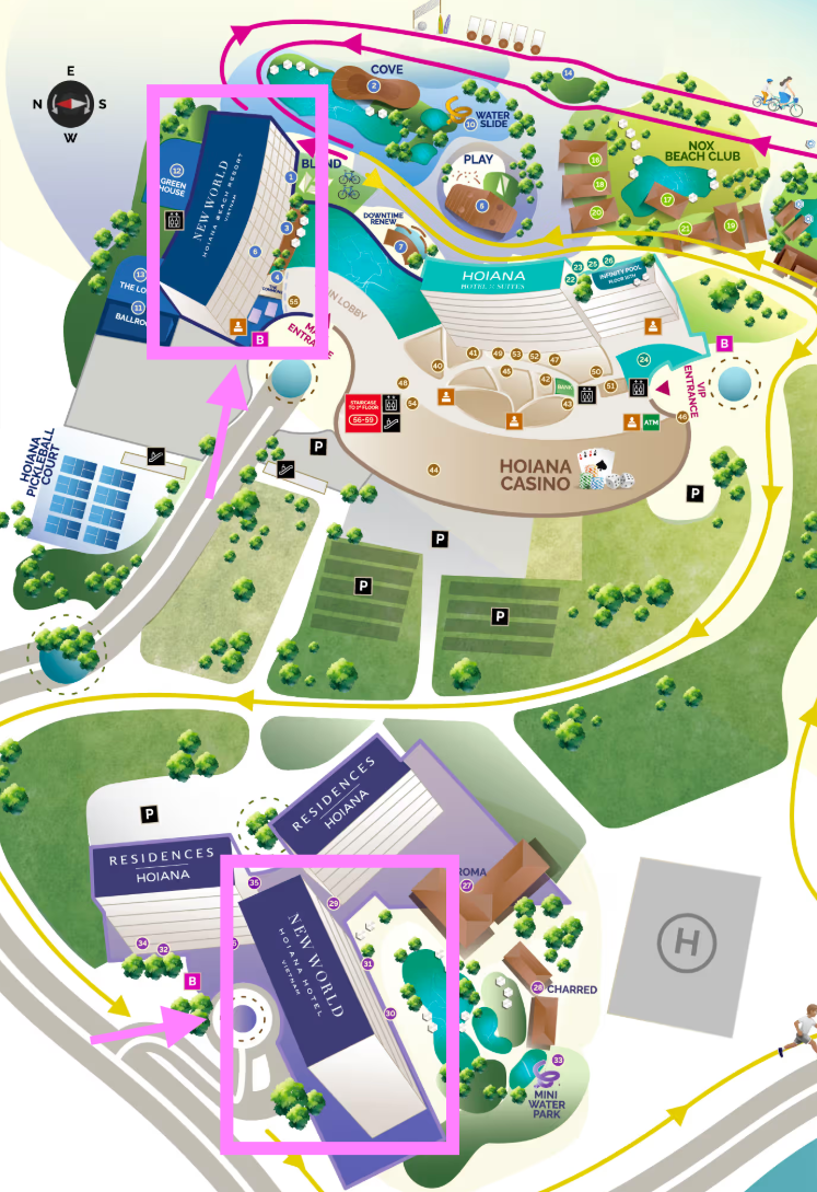 You may opt to stay in this hotel or elsewhere. This resort offers multiple stay options, depending on your budget.